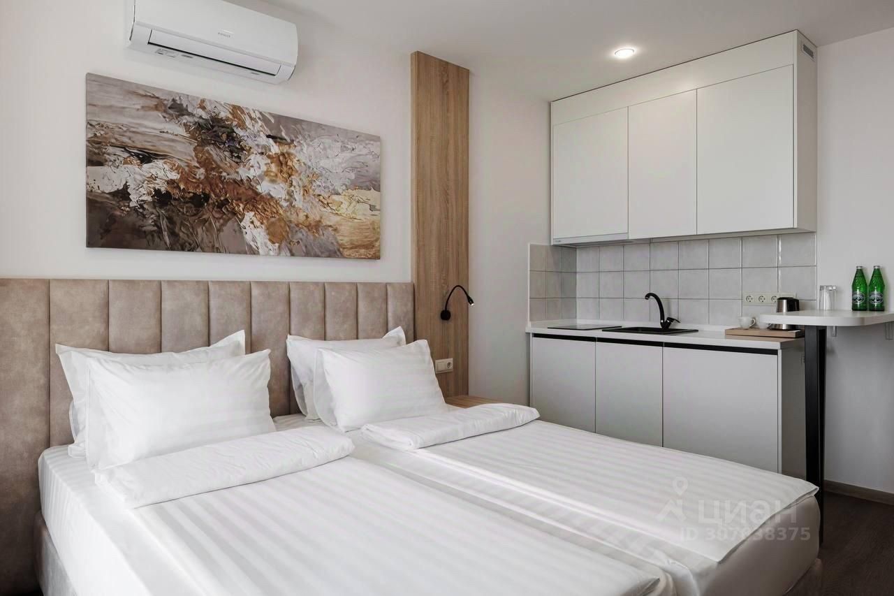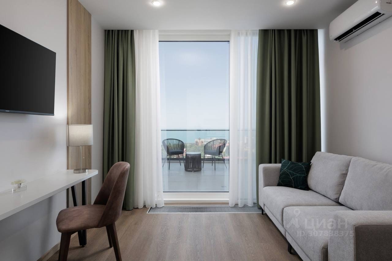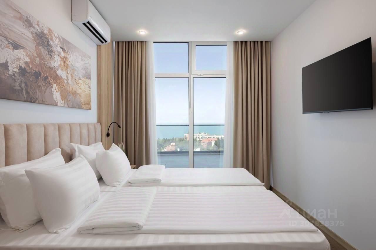 Продаются гостиничный номер в отеле Азимут. Располагается комплекс в центральном районе города Сочи, район резиденции Президента РФ Бочаров Ручей. Высокие потолки (3 метра) создают ощущение простора. Из окон открывается вид на морскую гладь.