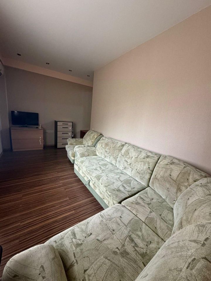 В квартире сделан евроремонт, что создает атмосферу уюта .Есть вся необходимая мебель как на кухне, так и в комнате, а также техника: новый кондиционер(тепло-холод), холодильник, телевизор и стиральная машина. Планировка продумана до мелочей, чтобы ваше пребывание здесь было максимально удобным. Санузел совмещенный, оснащен всей необходимой сантехникой. Кухонные принадлежности, места для хранения вещей.