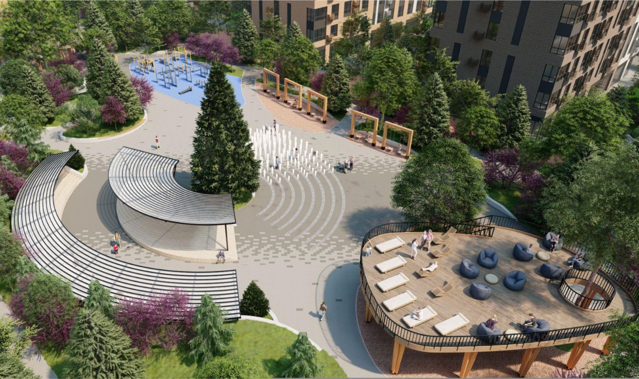 дворы без машин с большими детскими площадками, баланс природы и городской среды, библиотека, конгресс-центр, фитнес-центр, много парковочных мест, наземная многоуровневая парковка, выделенная велосипедная дорожка на длинной прогулочной аллее в собственном закрытом от посторонних парке, зарядные станции для автомобилей, спортивные площадки для детей и взрослых, собственный парк на территории комплекса - 1,2 Га, ТРК Красная площадь, Леруа Мерлен - 10 минут на машине, школа в 2 минутах ходьбы от дома, 3 минуты до детского сада, рядом находятся ледовый дворец Iсе Раlасе, спортивный комплекс ''Баскет Холл'', школа ЦСК и теннисные корты, выезд на Ейское шоссе - дорога на море за час без пробок.
