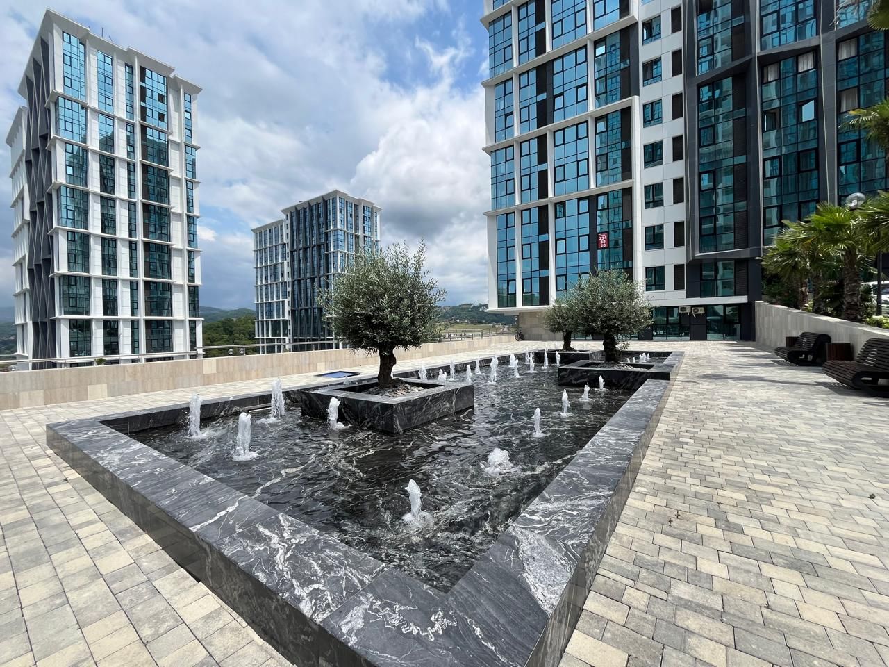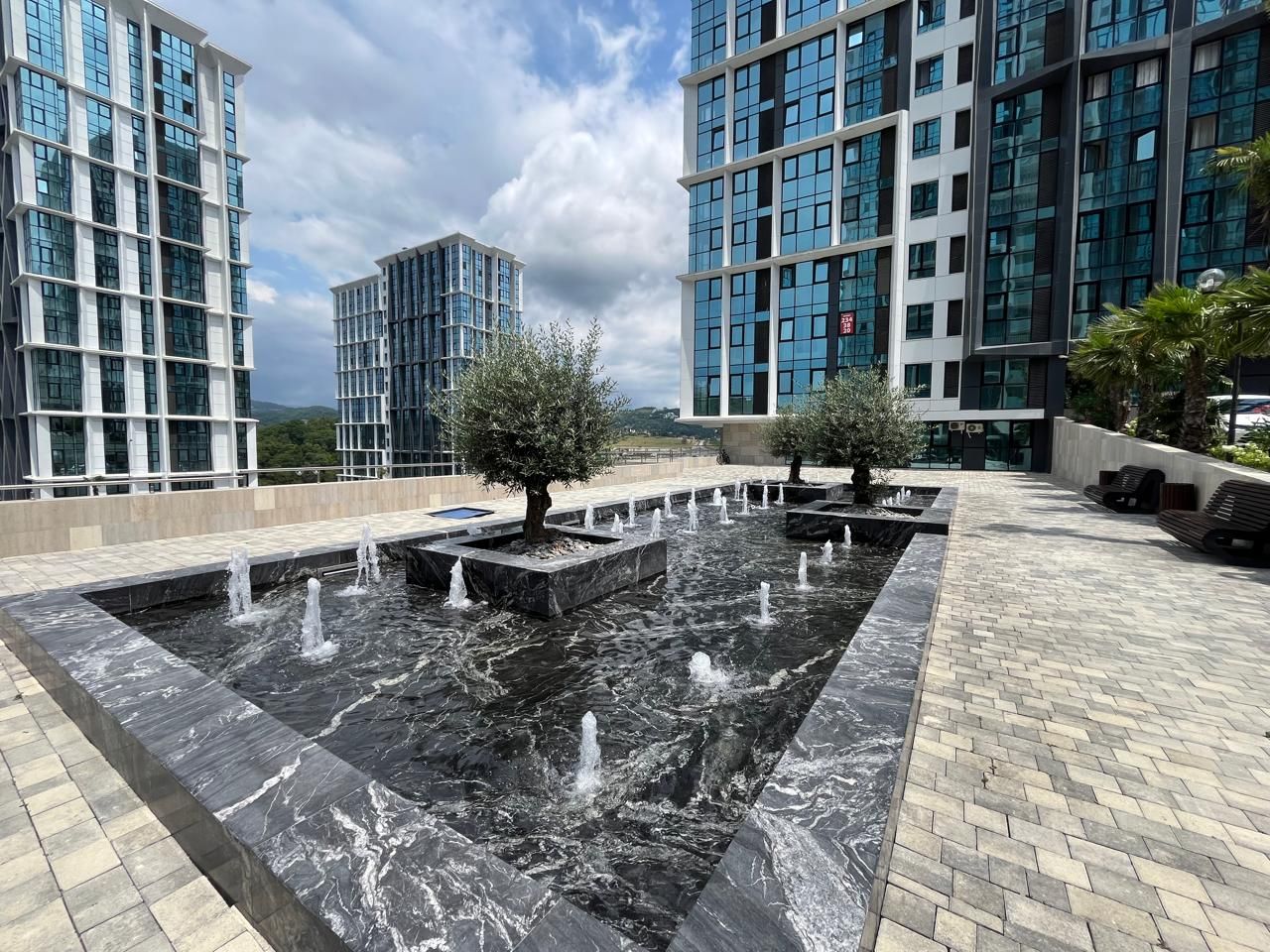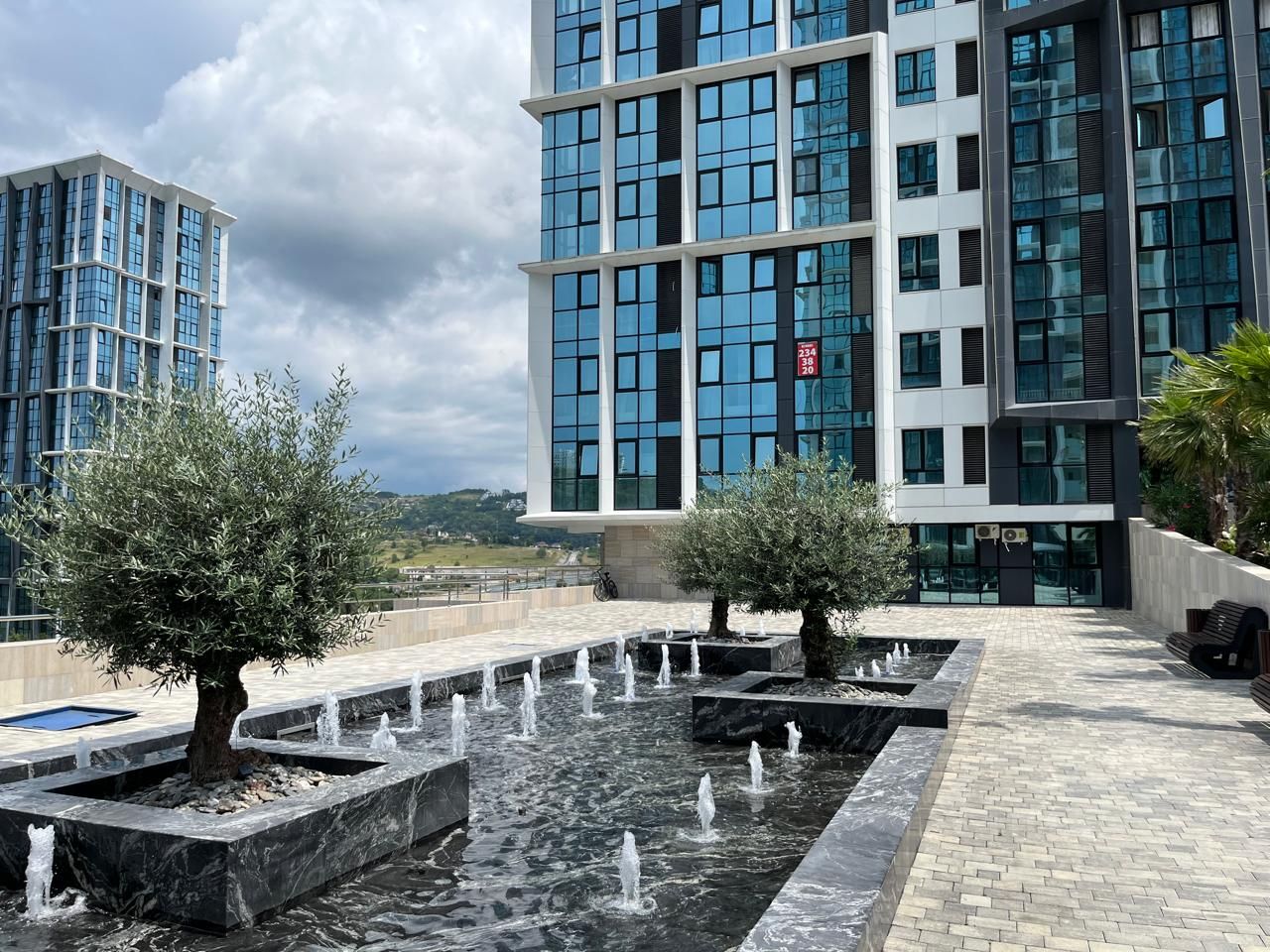 У комплекса расположены, новая школа, торговый центр, с различной коммерцией, кафе, рестораны, магазины.