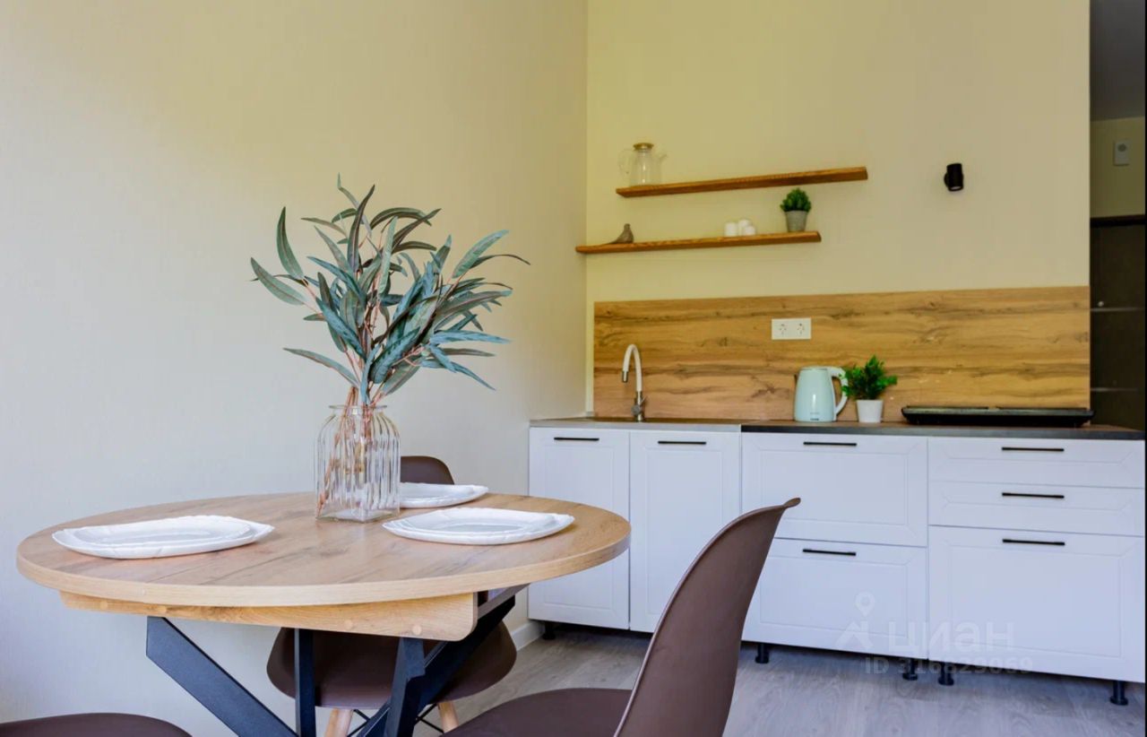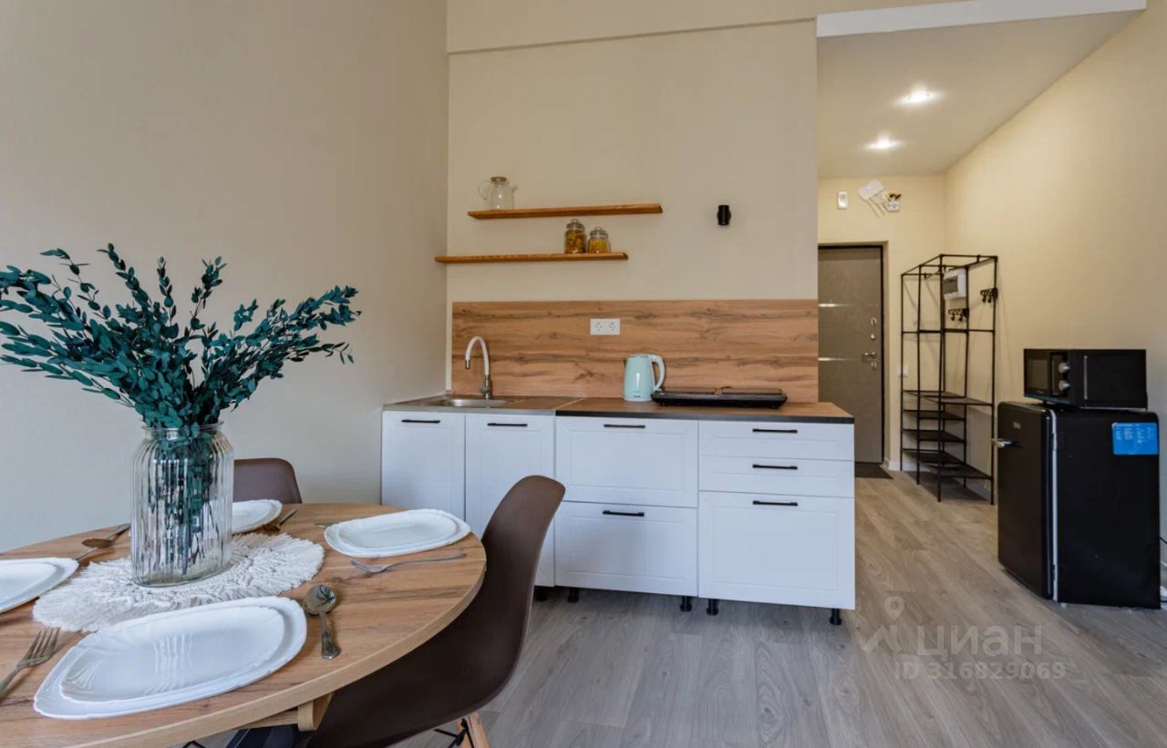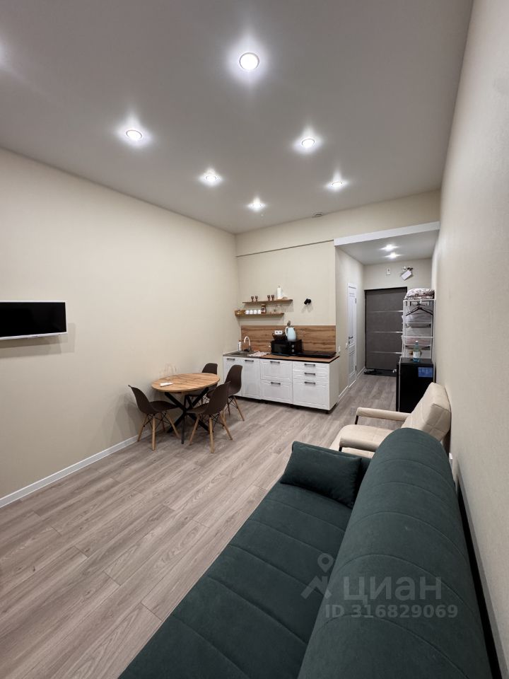Студия с евроремонтом, полностью готова к проживанию. В квартире есть всё необходимое: кондиционер, холодильник, телевизор и стиральная машина. Мебель установлена как на кухне, так и в жилой зоне, поэтому можно сразу заезжать без дополнительных хлопот. Санузел совмещённый, оборудован современной душевой кабиной.