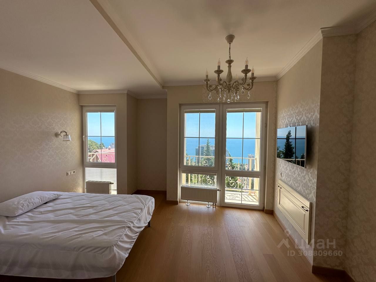 3 спальни со своими с/у и балконами, и кухня-гостиная.