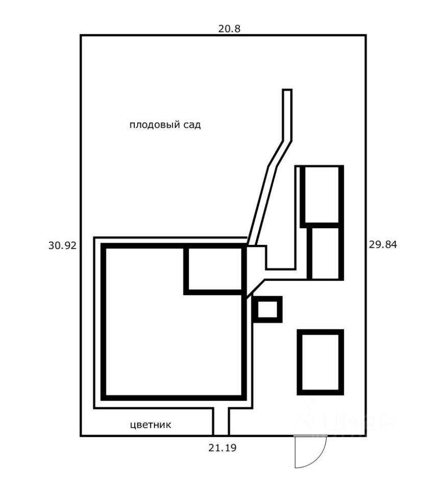 По периметру участок огорожен забором, по фасаду ворота.