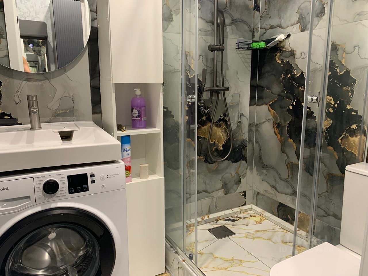 - ванная комната с душевой кабиной, имеется электрический полотенцесушитель, водонагреватель, стиральная машина, фен,