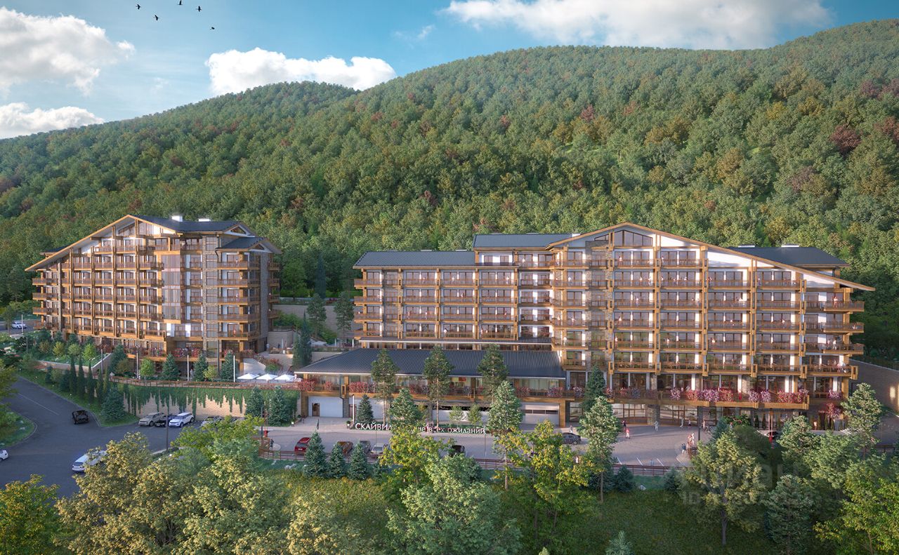 Территория комплекса закрыта от посторонних и благоустроена. К услугам жителей — подземный паркинг, комната для хранения инвентаря, ресторан с видом на горы и спа-комплекс, где предусмотрены бассейн, хамам, фитнес-зал, травяная и финская сауны. Для комфорта жильцов доступен рум-сервис. Рядом с комплексом простирается реликтовый лес — идеальное место для прогулок и восстановления сил.
