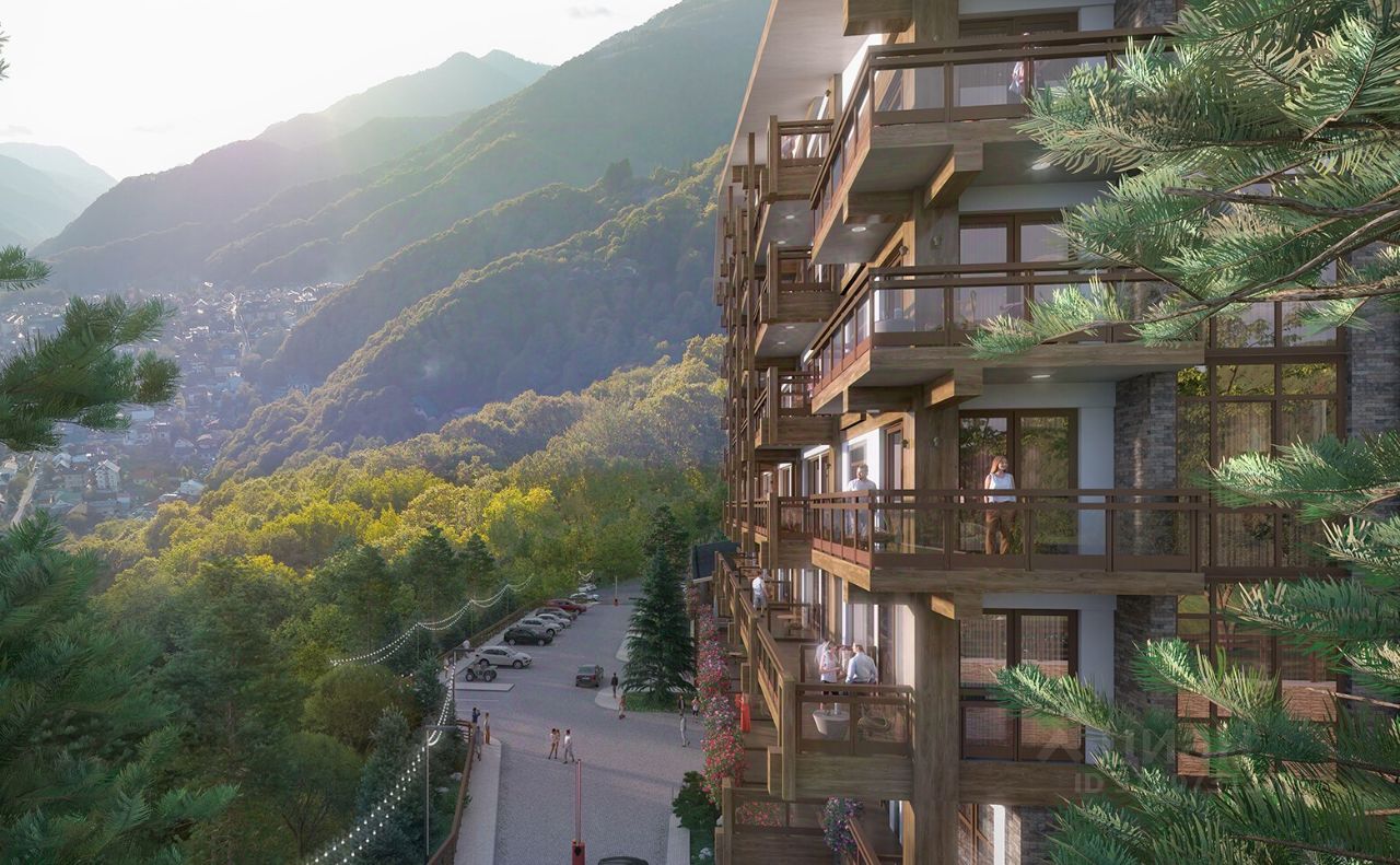 Территория комплекса закрыта от посторонних и благоустроена. К услугам жителей — подземный паркинг, комната для хранения инвентаря, ресторан с видом на горы и спа-комплекс, где предусмотрены бассейн, хамам, фитнес-зал, травяная и финская сауны. Для комфорта жильцов доступен рум-сервис. Рядом с комплексом простирается реликтовый лес — идеальное место для прогулок и восстановления сил.