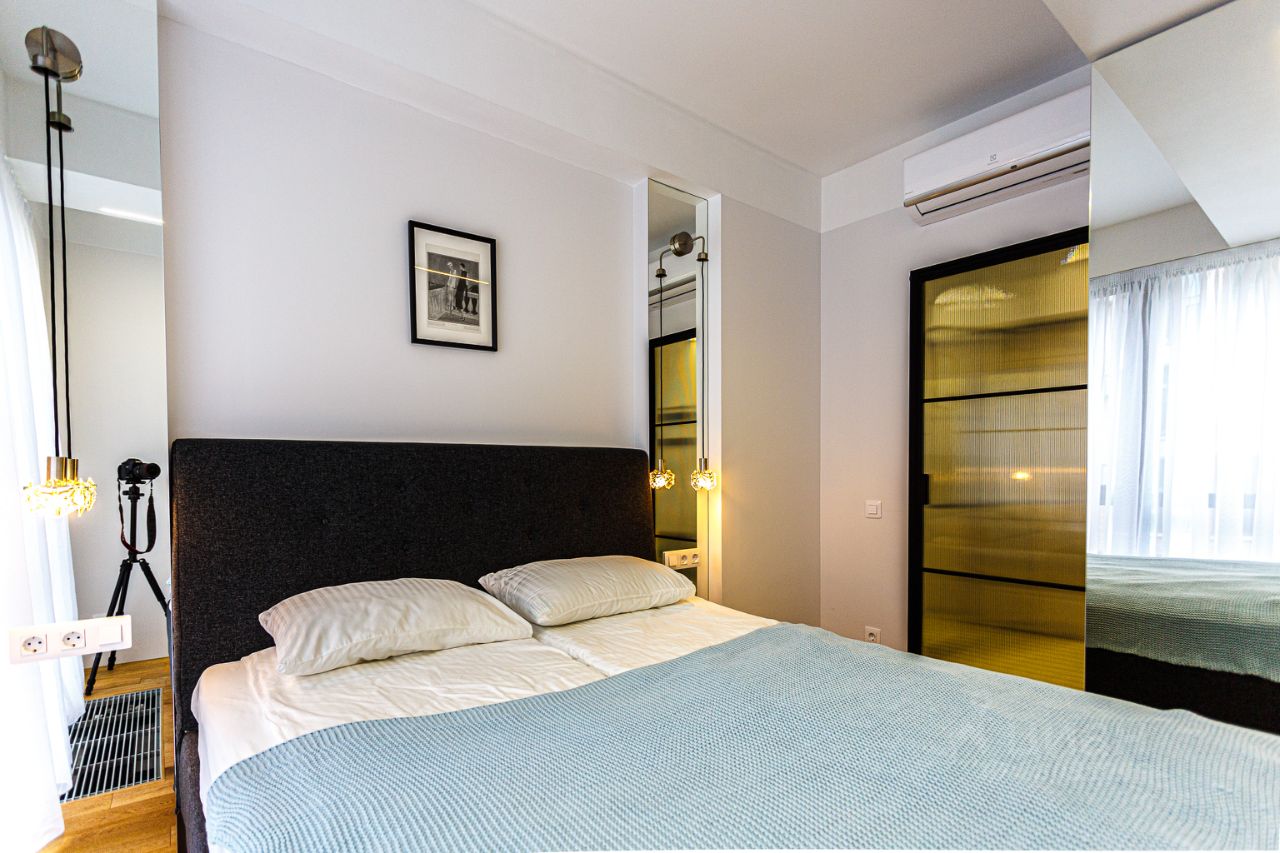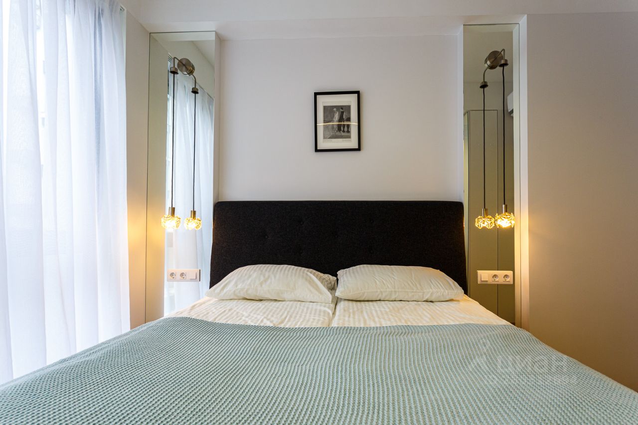 В апартаментах новый ремонт в современном стиле. Для Вашего удобства спальня двуспальной кроватью и большой двуспальный диван Полностью оборудованы всей необходимой качественной мебелью и техникой: Стиральная машина,посудомоечная машина, телевизор,кондиционеры, духовка,микроволновая печь,кофеварка ,утюг ,чайник,фен.