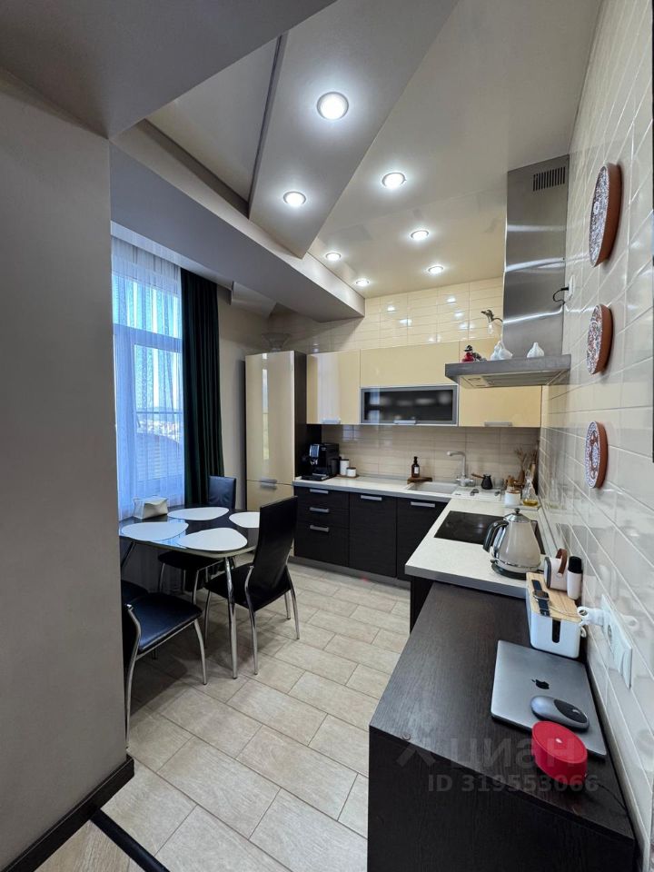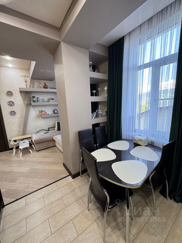 Продается уютная двухкомнатная квартира в Сочи на Высокогорной улице, 56Б. Общая площадь квартиры составляет 55 кв. м, из которых 40 кв. м - жилая площадь и 10 кв. м - просторная кухня. Квартира находится на последнем, пятом этаже монолитного дома с высокими потолками в 3 метра.