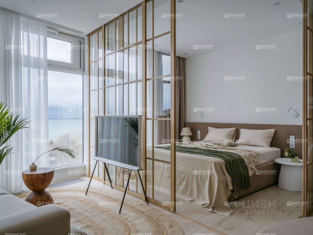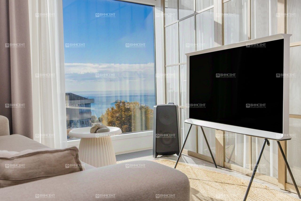 Апартамент расположен на 8 этаже. Из панорамных окон открывается живописный вид на море. Выполнен дизайнерский ремонт с использованием современных материалов. Интерьер оформлен в едином стиле, пространство грамотно зонировано: кухня-гостиная, две отдельные комнаты, совмещённый санузел и балкон. Всё наполнение — мебель и бытовая техника — остаётся новым собственникам, можно заехать сразу после сделки.