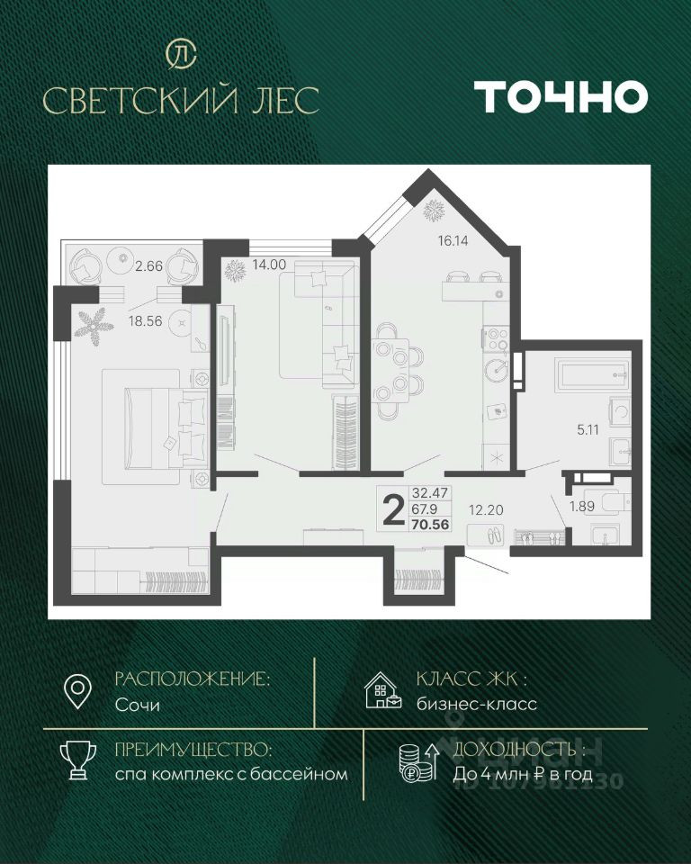 продам 2-к, Сочи33 091 940 ₽