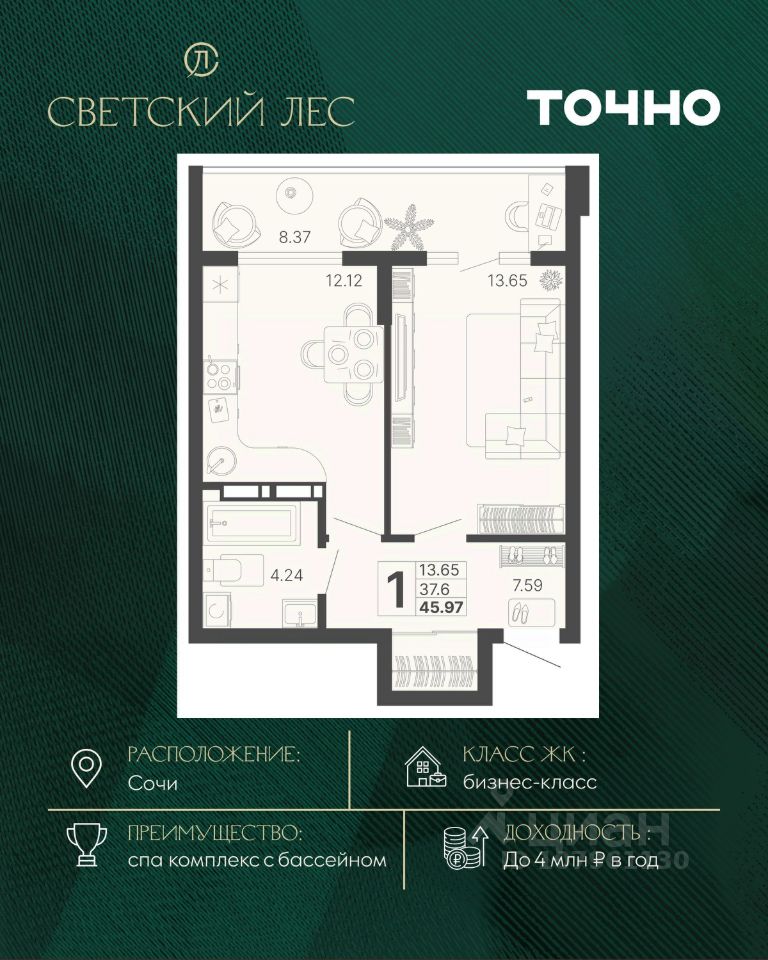 продам 1-к, Сочи18 898 000 ₽