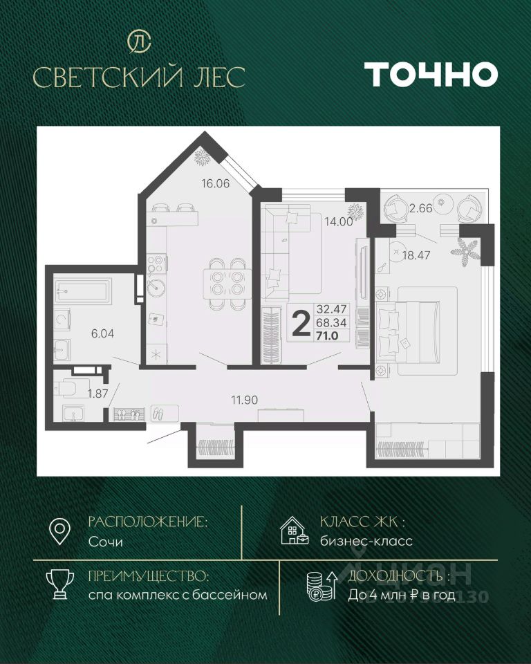 продам 2-к, Сочи32 257 210 ₽