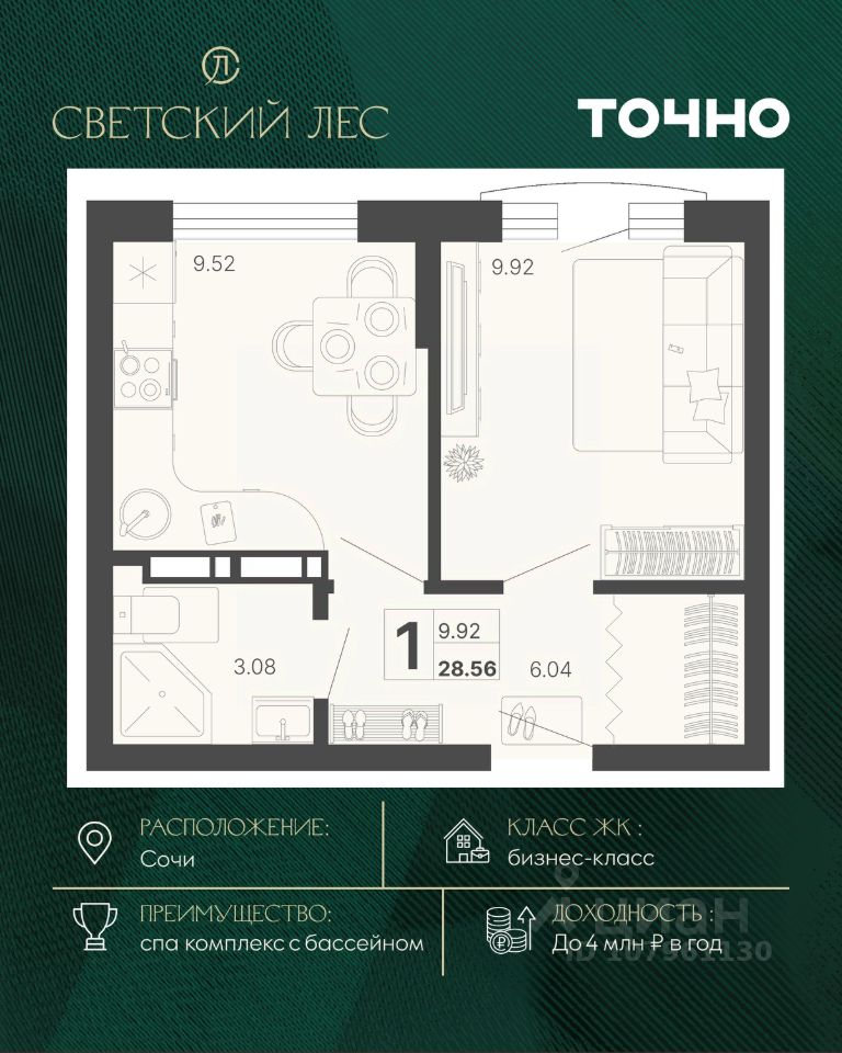 продам 1-к, Сочи15 692 000 ₽
