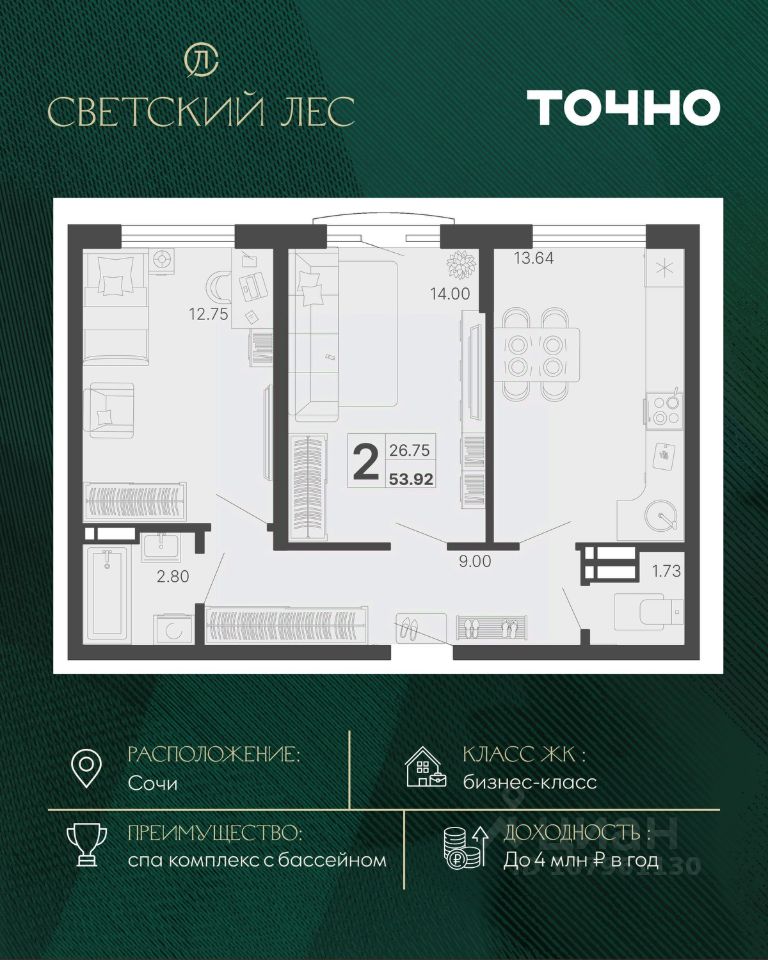 продам 2-к, Сочи26 960 000 ₽