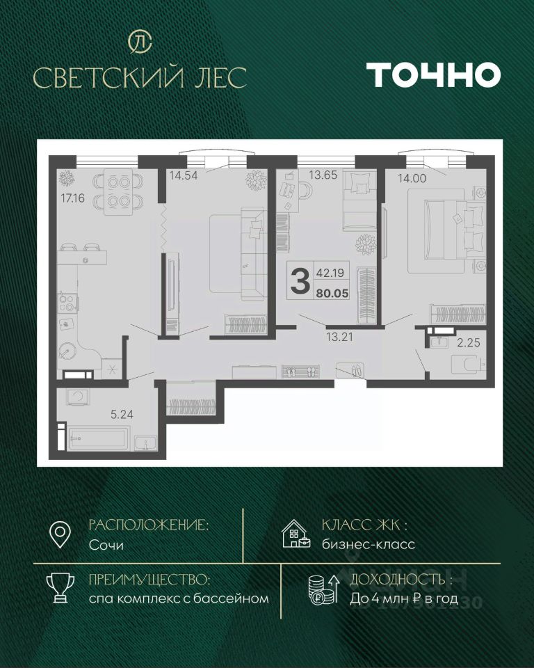 продам 3-к, Сочи36 422 750 ₽