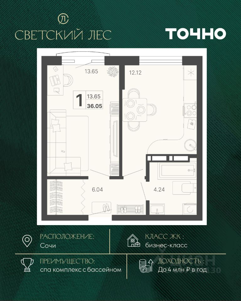 продам 1-к, Сочи20 297 000 ₽