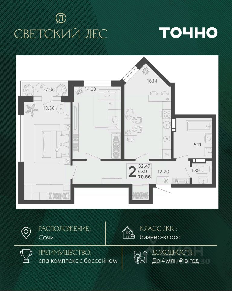 продам 2-к, Сочи30 322 740 ₽