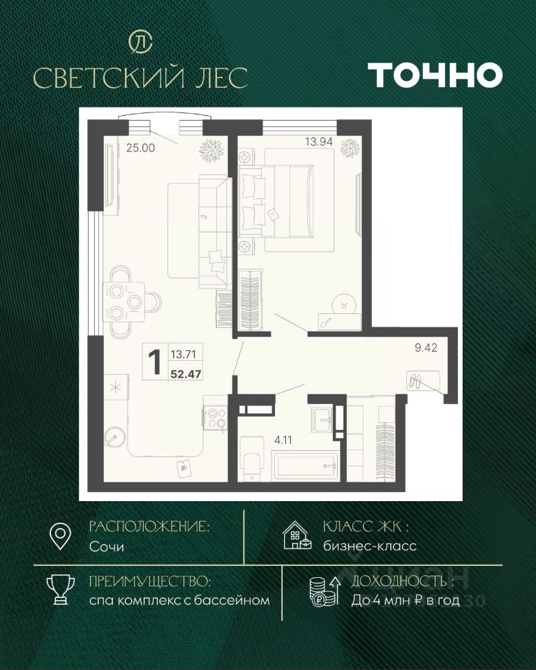 продам 1-к, Сочи23 609 000 ₽