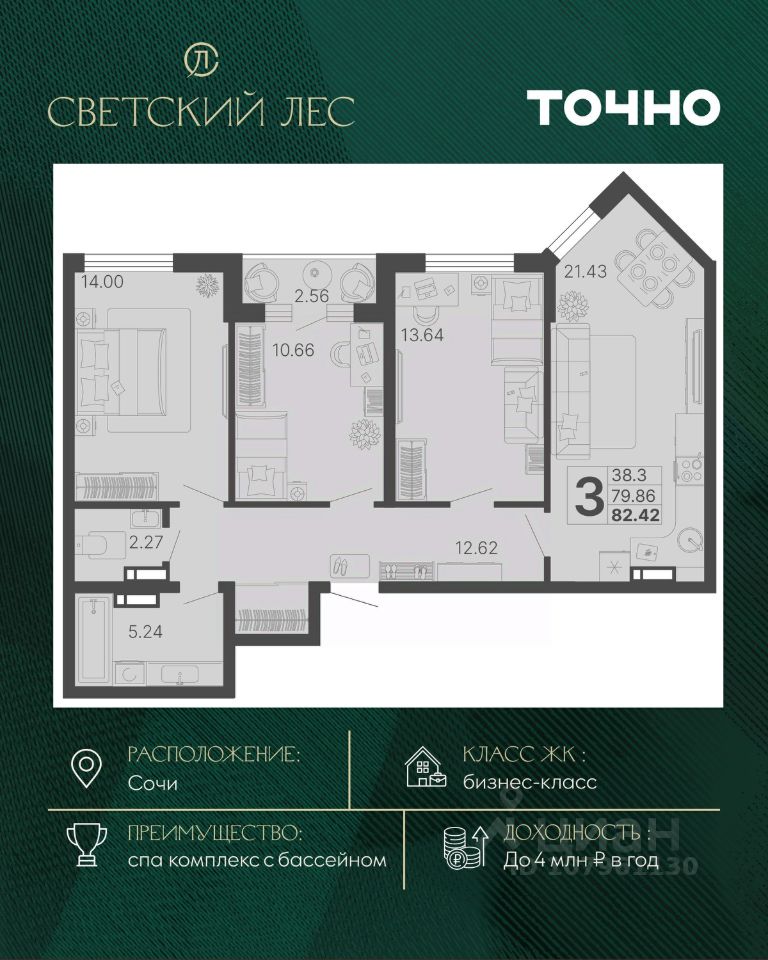 продам 3-к, Сочи35 133 620 ₽