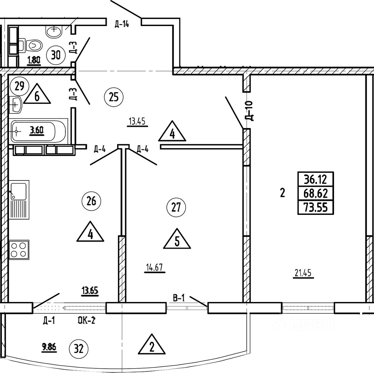 Общая площадь73,55 м2