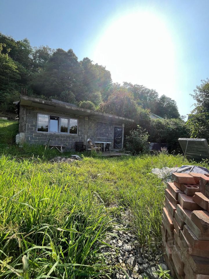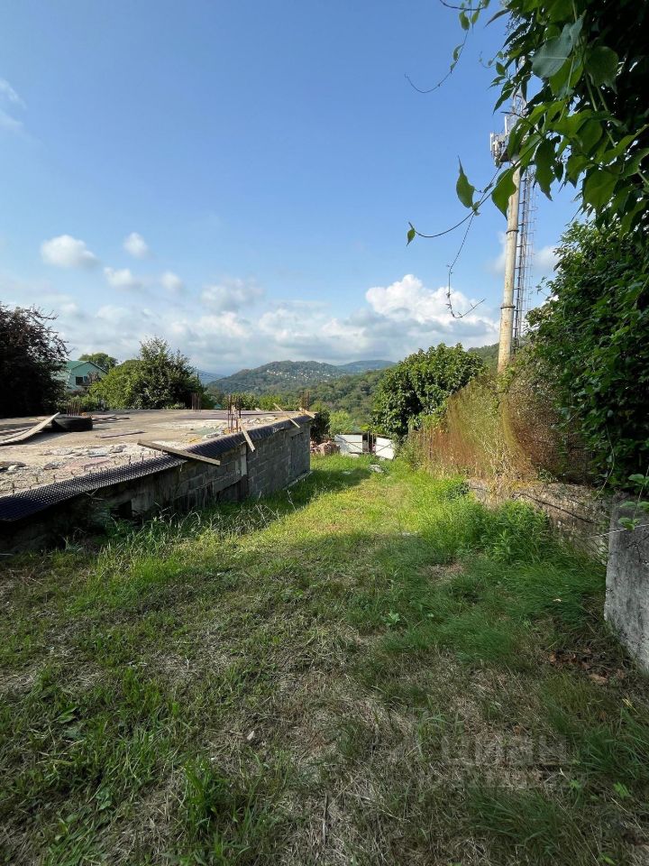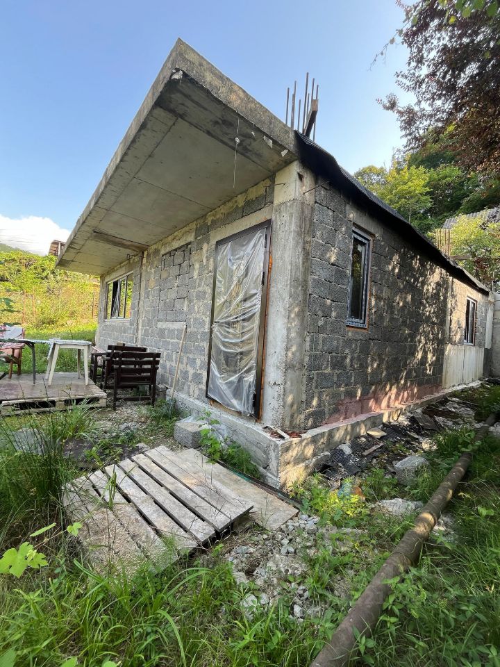 Продается недостроенный дом с земельным участком в СНТ Гранат, микр. Мацеста. Дом площадью 173,5 кв.м. (получены документы), первый этаж построен 86 кв.м., установлены окна и дверь, можно делать ремонт и жить. Участок с небольшим склоном, прямоугольной формы, граничит с территорией национального парка. Вокруг жилые дома, хороший подъезд к участку.