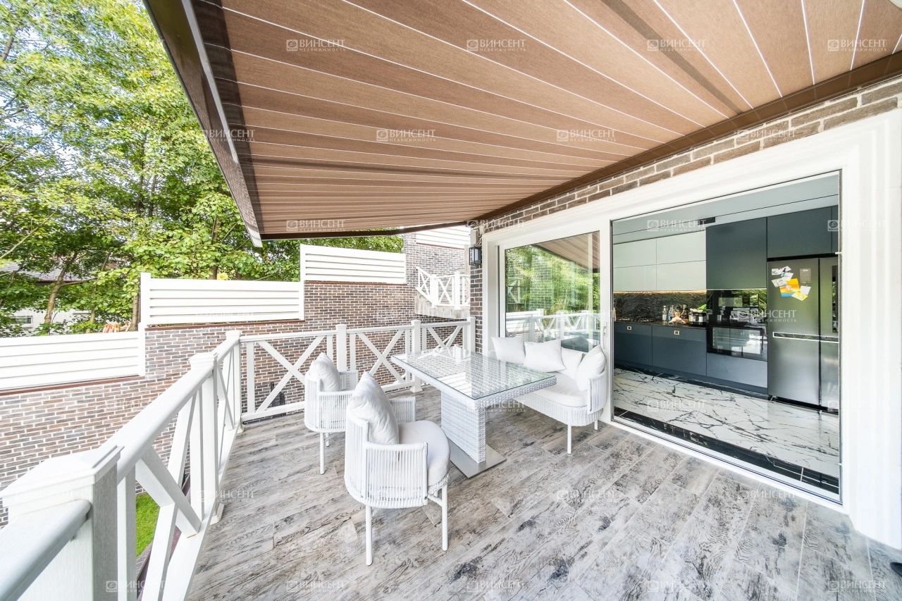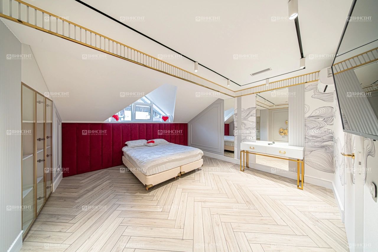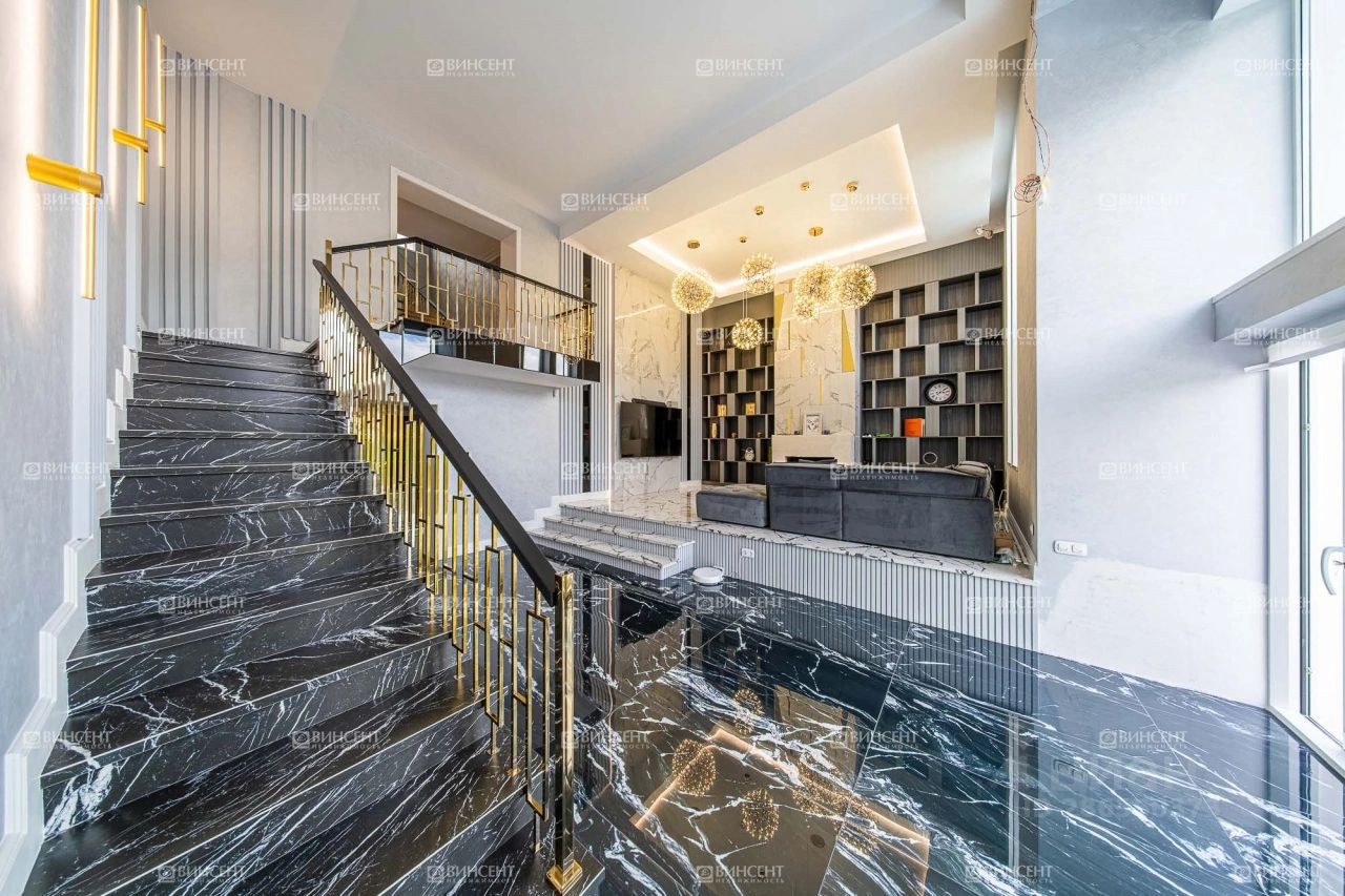 Коттедж с дизайнерским ремонтом, полностью продуманным от отделочных материалов до декоративных элементов и световых точек. Мебель подобрана в полном соответствии с общей стилистической концепцией. Дизайнеры уделили большое внимание организации зон для хранения. Обособленные гардеробные и встроенные шкафы позволяют снизить визуальный шум от личных вещей.