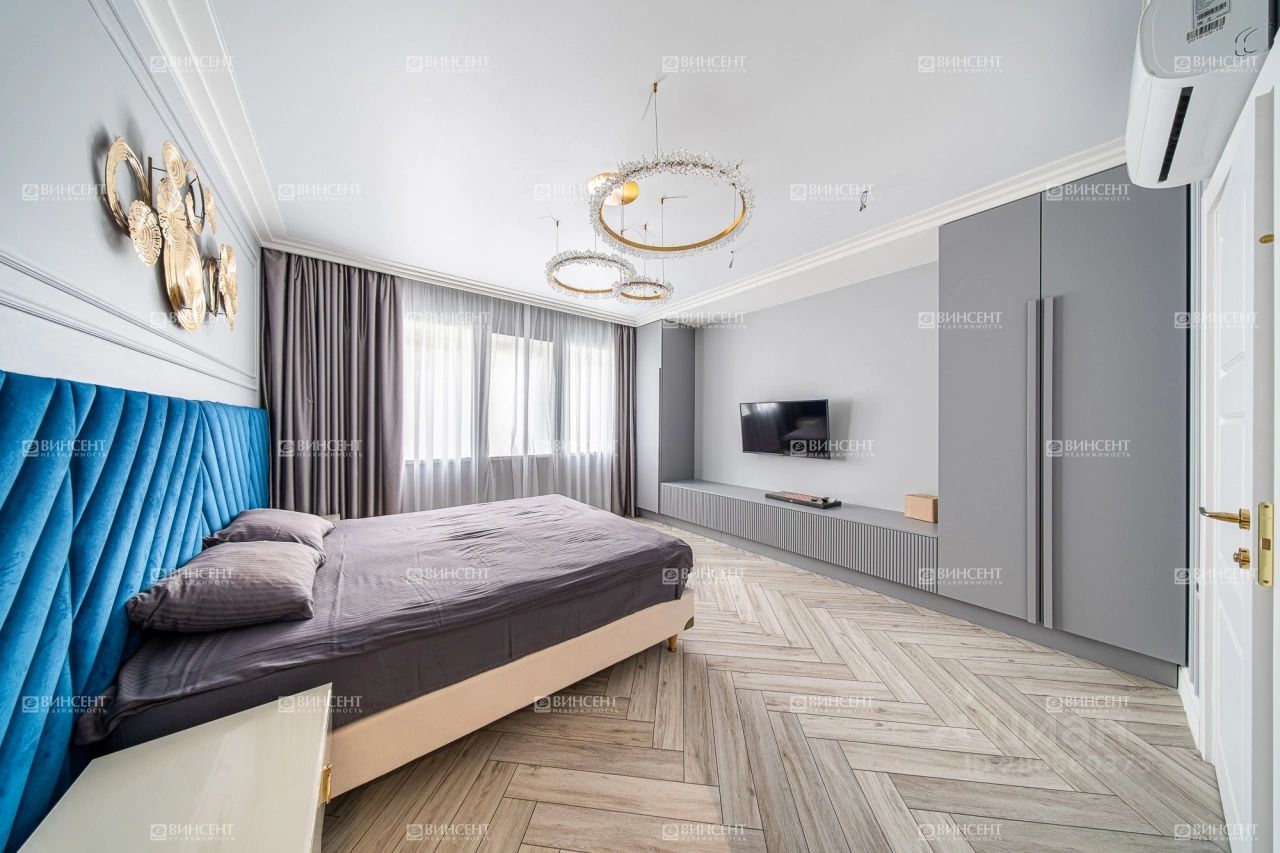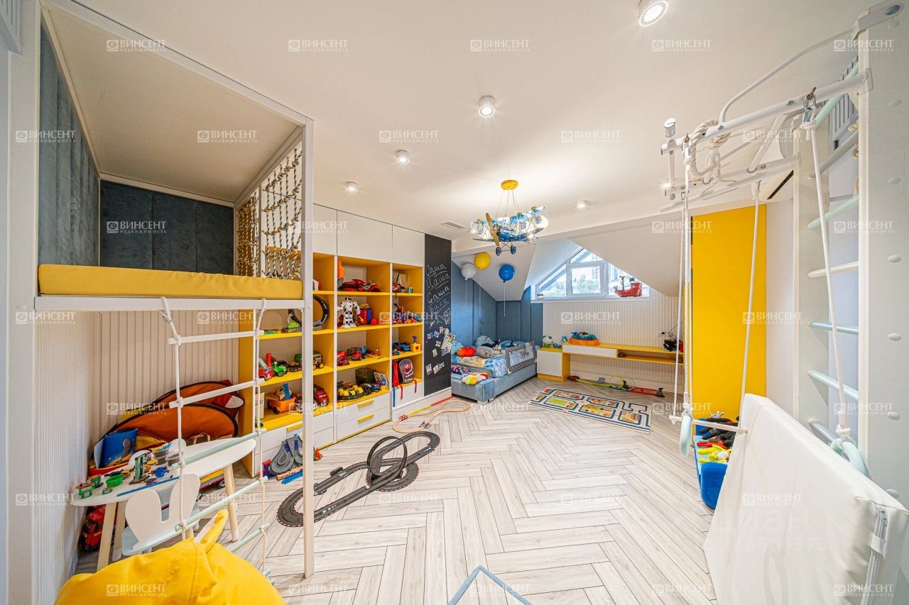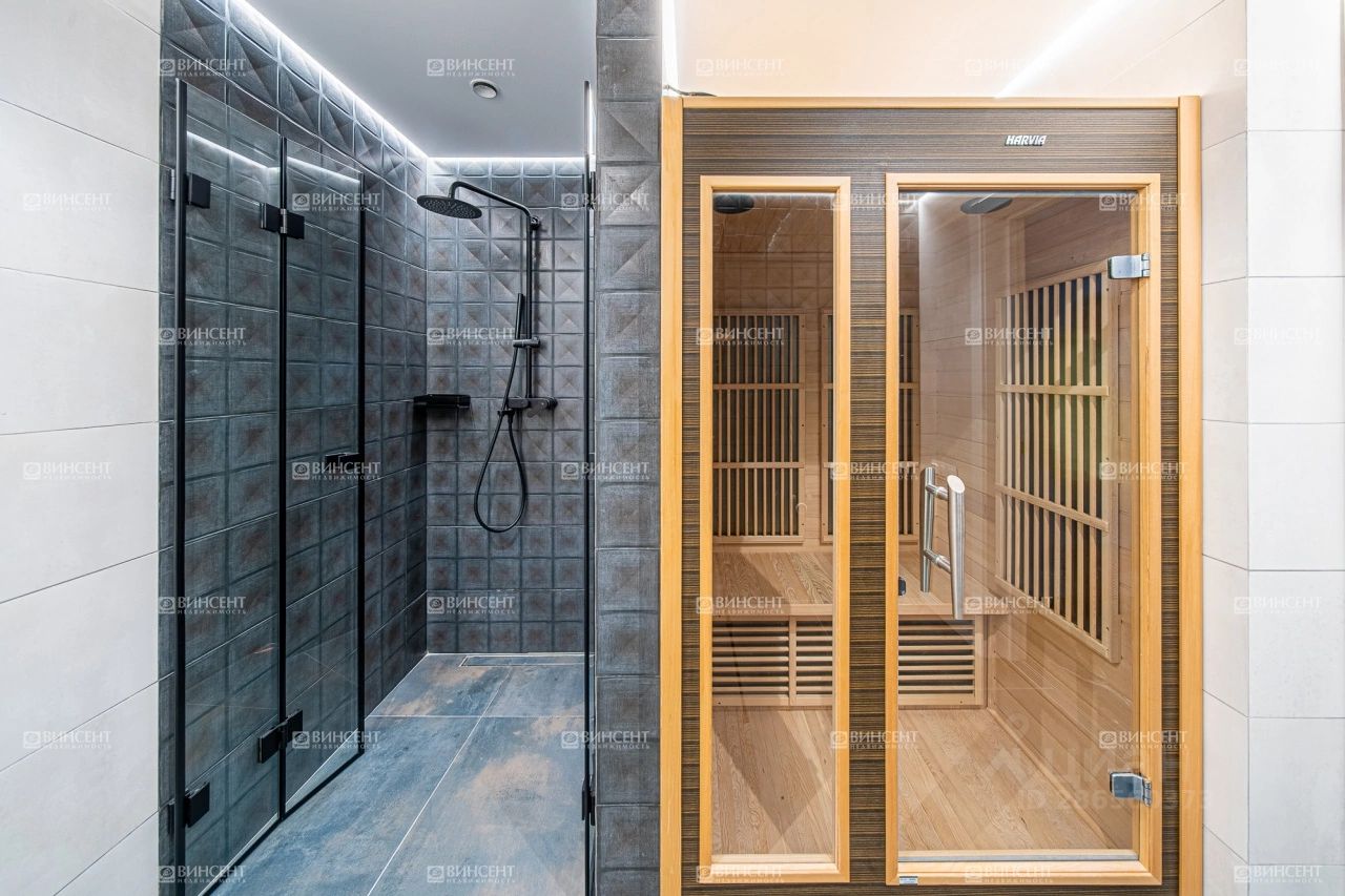 Коттедж с дизайнерским ремонтом, полностью продуманным от отделочных материалов до декоративных элементов и световых точек. Мебель подобрана в полном соответствии с общей стилистической концепцией. Дизайнеры уделили большое внимание организации зон для хранения. Обособленные гардеробные и встроенные шкафы позволяют снизить визуальный шум от личных вещей.
