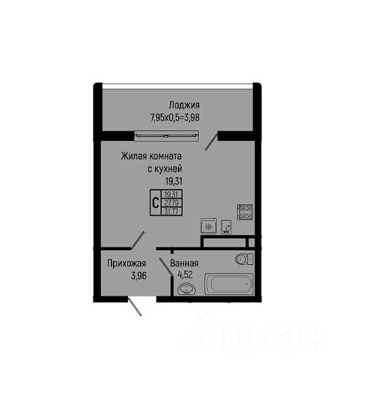 Общая площадь31,77 м2