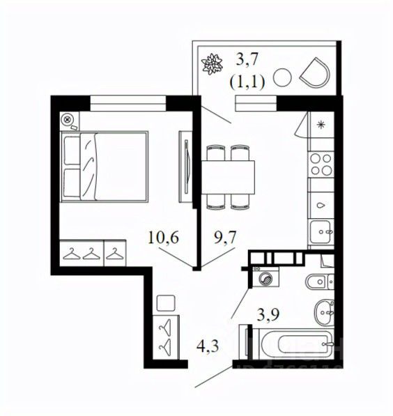 Жилая площадь10,6 м2