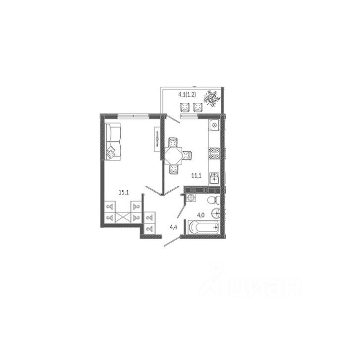 Жилая площадь15,1 м2