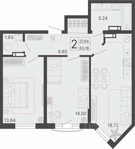 Общая площадь63,18 м2