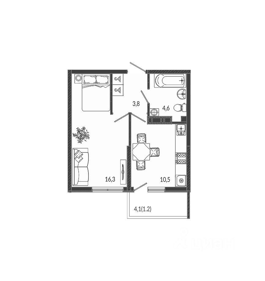 Жилая площадь16,3 м2