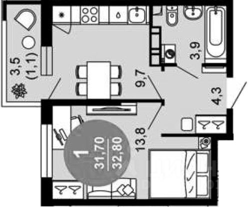 Общая площадь32,8 м2