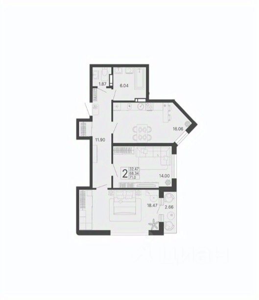 Кухня16,1 м2