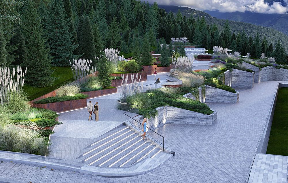На территории комплекса ландшафтное озеленение, прогулочный теренкур , современная детская площадка, зона отдыха у бассейна.