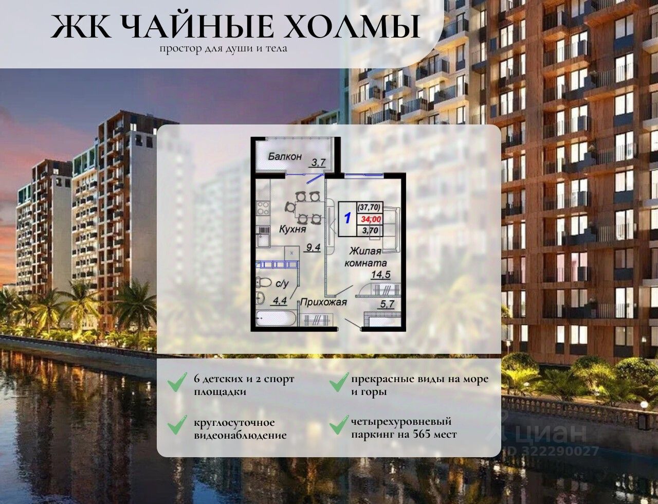 Жилой комплекс является настоящим уголком рая. Это непревзойденный уровень комфорта и качества жизни. Свежий воздух, прекрасные виды на чайные плантации, море и горы - все это станет вашим ежедневным спутником. Вы просыпаетесь с чувством благодатного места, где природа воплощена в каждой детали. Все квартиры представлены со свободной планировкой, что позволит воплотить ваши самые смелые архитектурные и дизайнерские идеи. Высокие потолки 2,95 м создают атмосферу простора и свободы.