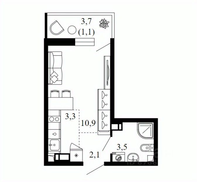 Общая площадь20,9 м2