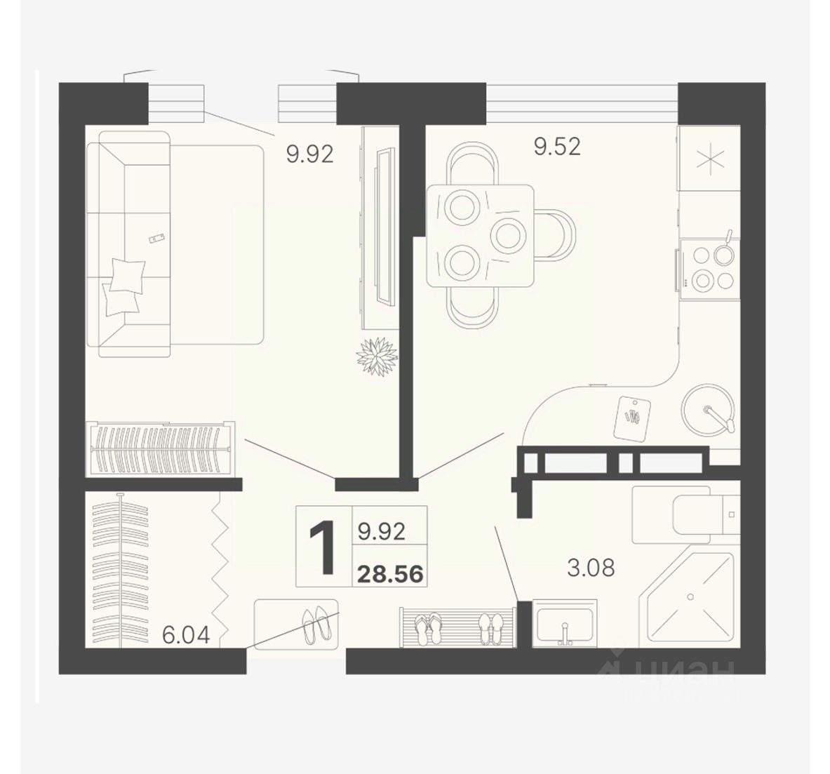 Общая площадь28,56 м2