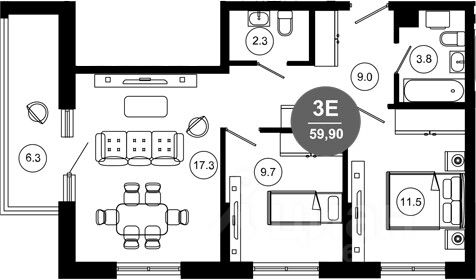 Общая площадь59,9 м2