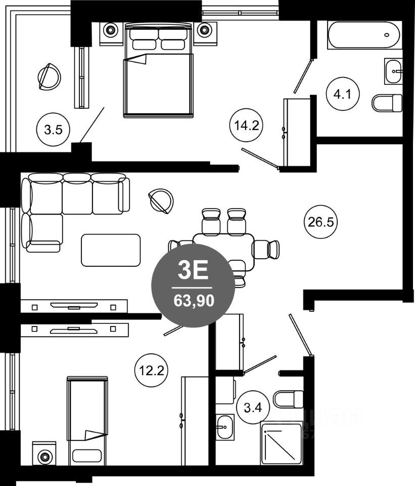 Общая площадь63,9 м2
