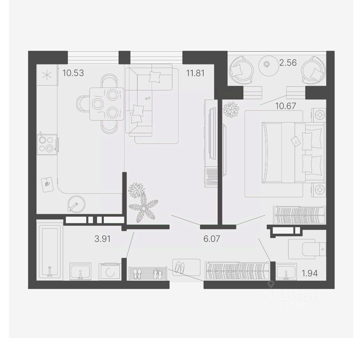 Общая площадь46,21 м2