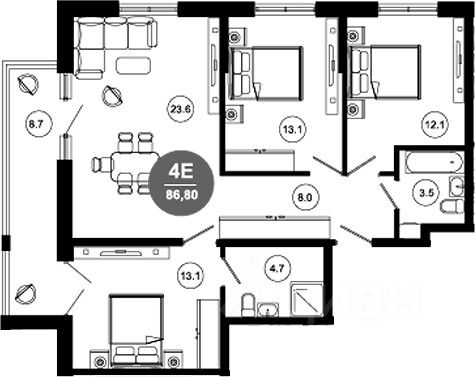 Общая площадь86,8 м2