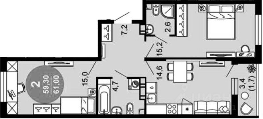 Общая площадь61 м2