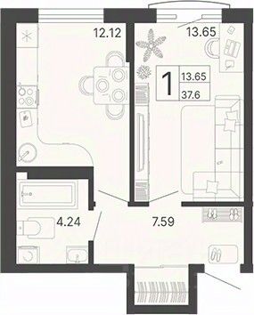 Общая площадь37,6 м2