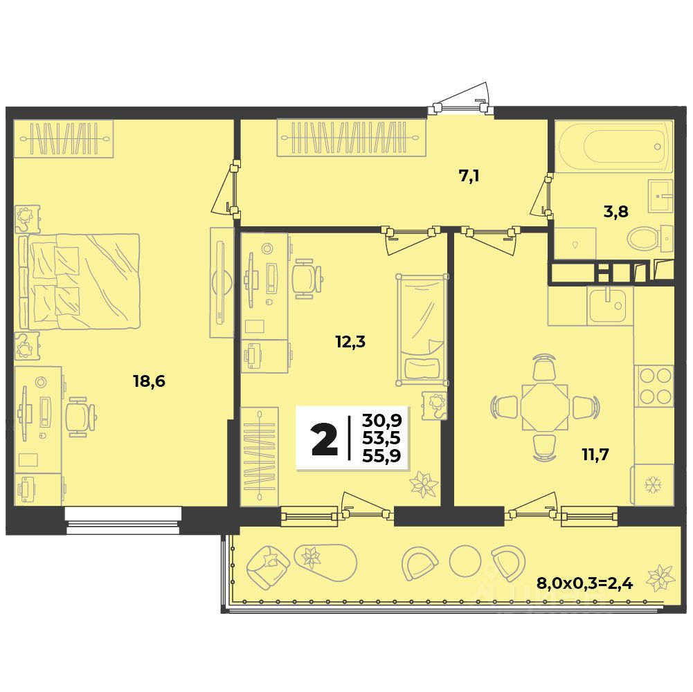 Общая площадь55,9 м2