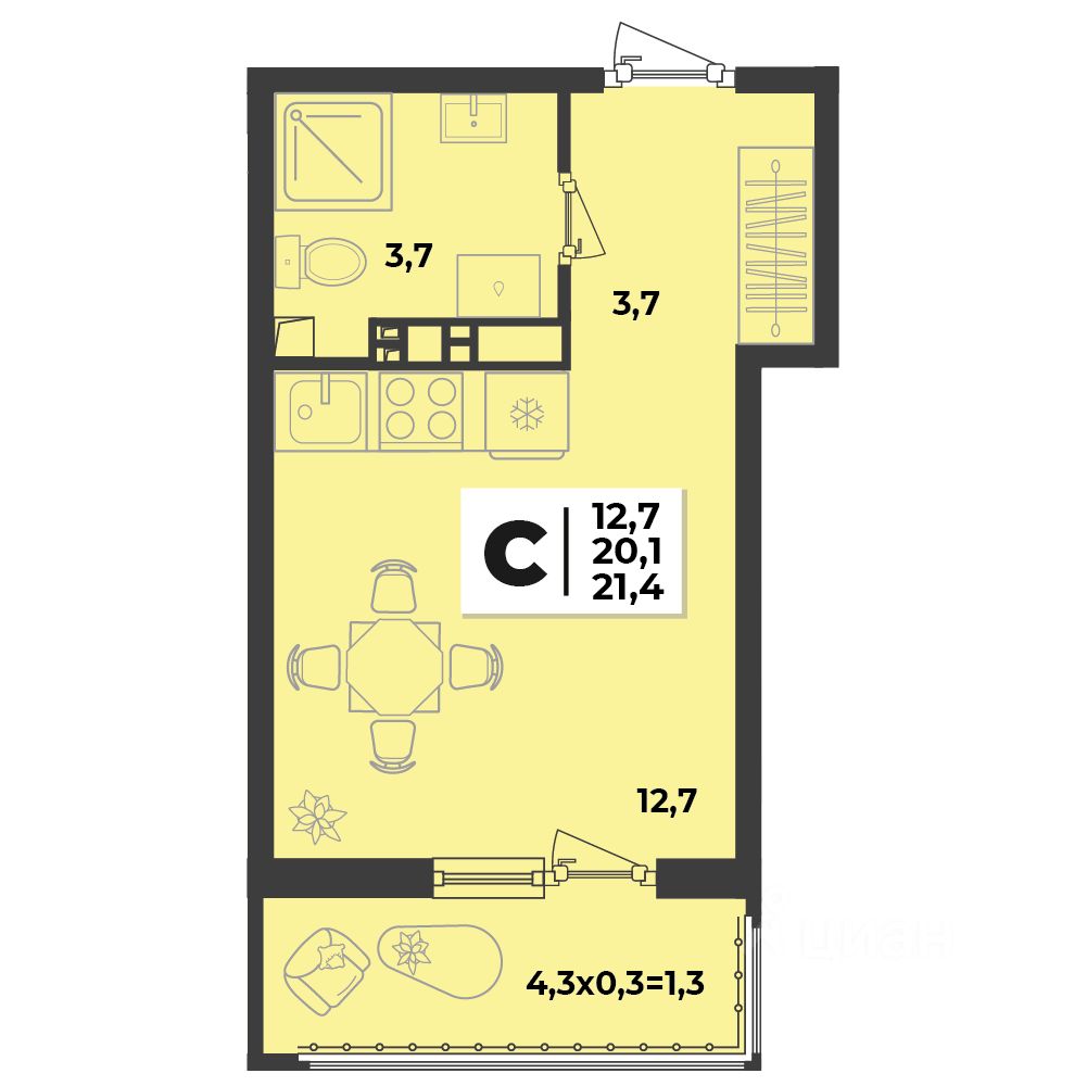 Общая площадь21,4 м2