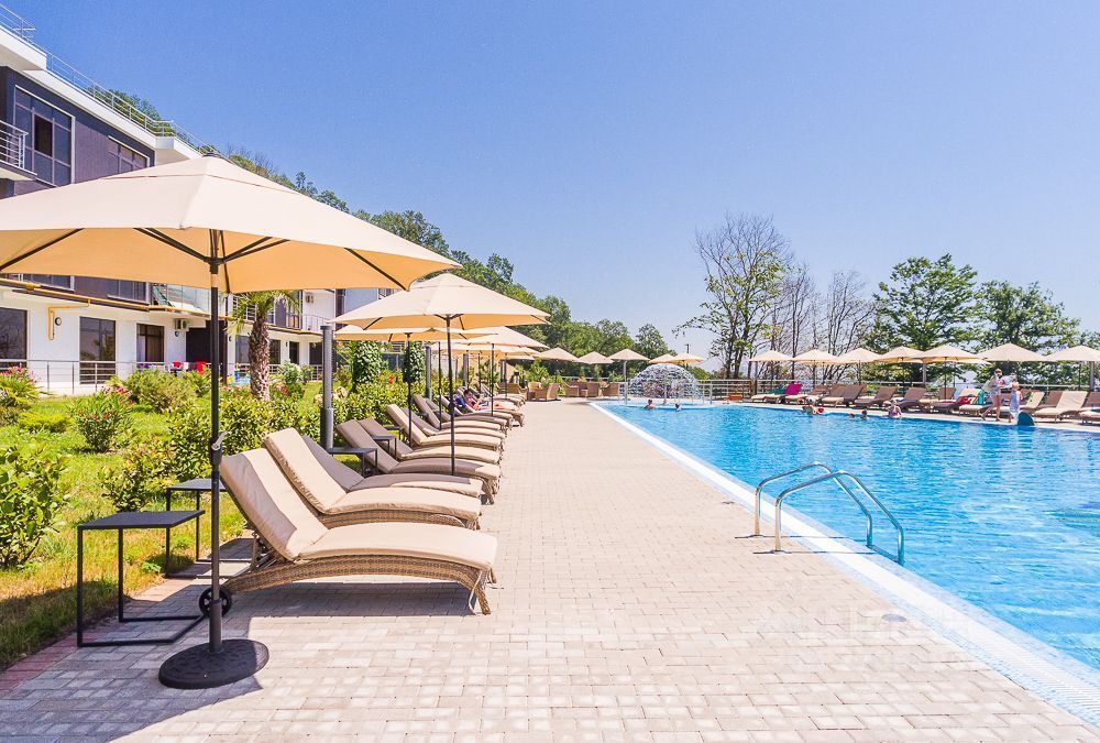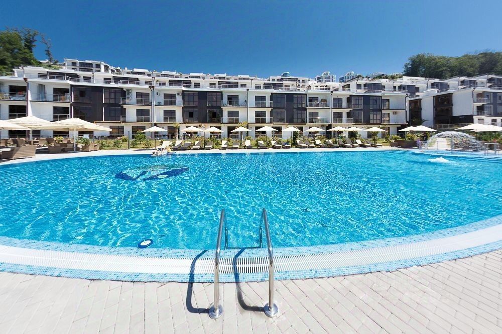 Комплекс закрытого клубного типа с большим бассейном, лобби баром. рестораном, теннисным кортом и тренажёрным залом.