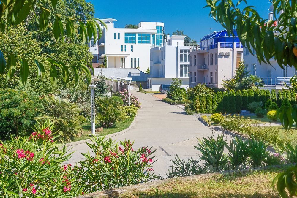 Много прогулочных дорожек, за территорией ухаживает собственный садовник, работает в круглосуточном режиме служба безопасности, специальные карманы для парковки автомобилей жильцов и гостей комплекса.