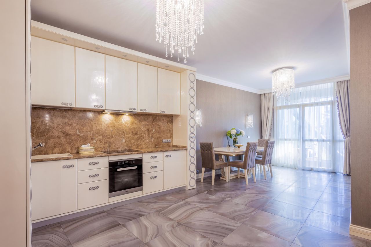 Код лота: РАД-440981. Реализуется на торгах. 3-комнатная квартира европланировки в ЖК премиум-класса ''Новая Александрия'', в респектабельном районе Черноморского побережья, известном как Золотой треугольник, по адресу: Краснодарский край, Хостинский р-н, г. Сочи, пр. Пушкина, д. 6. Квартира, общей площадью 92 кв. м (с учетом площади лоджий - 5, 4 кв. м), с объединенной кухней-гостиной и 2 отдельными спальнями улучшенной планировки, c панорамными окнами Schuco (алюминиевый профиль), роскошной мебелью и элитной бытовой техникой, расположена на 3-м этаже клубного дома с индивидуальным архитектурным обликом. В 2017 г. в квартире была выполнена отделка из дорогих, качественных материалов. Дизайнерский ремонт в квартире остался после собственника, проживавшего здесь с детьми.