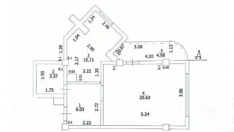 Распланирована на прихожую, кухню, спальню, санузел, балкон.